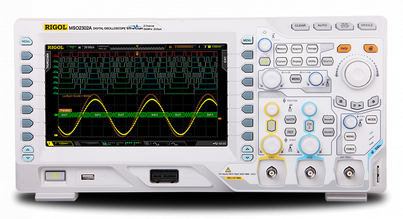 Цифровой осциллограф Rigol MSO2102A является эффективным средством исследования сигналов, обладая низким уровнем шума, расширенными возможностями по запуску, а также возможностью синхронизации и декодирования сигналов шин (I²C, RS-232, SPI и др.).