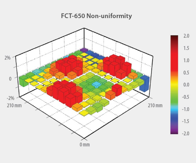 Равномерность облучения FCT-650 составляет класс (±2%) 210 × 210 мм или более.