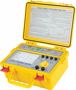 Фазовый тестер 4183 СР: Измерение переменного высоковольтного напряжения; Определение порядка чередования фаз; Определение взаимосвязи фаз в разных кабелях (синхронности чередования фаз в 2-х разных электрокабелях); Батарейное питание; Малогабаритный; Простота, компактность, надёжность; Усиленный, противоударный корпус; Масса 1 кг.