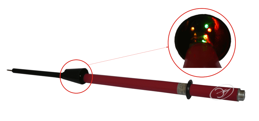Фазоуказатель УВНФ-110СЗ позволяет определять опасное напряжение на деревянной опоре без применения заземляющего провода, а в комплекте со сборной 4-х звенной изолирующей оперaтивной штангой ШО-10-4–6,6 длиной 6,6 м и с земли без подъема на опору ВЛ.