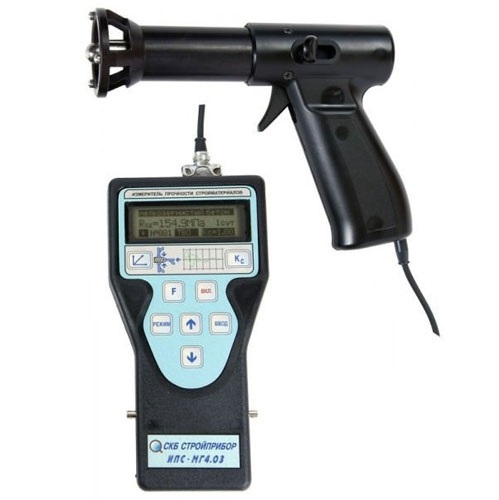 Приборы ИПС-МГ4.01, ИПС-МГ4.03, ИПС-МГ4.01 (цветной дисплей), ИПС-МГ4.03 (цветной дисплей) и ИПС-МГ4.04 (цветной дисплей) предназначены для определения прочности бетона по ГОСТ 22690, на основе предварительно установленной зависимости между прочностью бетона, определенной при испытании образцов в прессе и измеренным ускорением, возникающим при взаимодействии индентора измерителя с бетонным образцом, при постоянной энергии удара (Е=0,12 Дж).